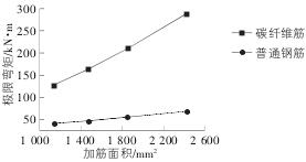 The built-in carbon fiber reinforced steel pipe pile by the equivalent calculation method with reinforcement ratio, calculation of steel fiber reinforced other processing, will be equivalent to the reinforcement ratio, relative steel tube carbon fiber reinforcement belongs to high strength materials were added for equivalent calculation of ultimate moment. Analysis of 3 root diameter and diameter of 25, with 22, 28, 32 with four kinds of circumstances, the ultimate moment is: 127.070 kN m, 164.714 kN, 210.730 m, kN, m, kN 287.930 m, the built-in carbon fiber is 3 times to 4 times the ordinary reinforced ultimate moment, see figure 3.